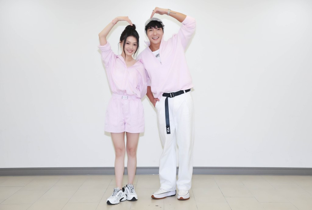 ▲蜜雪(左)、江耀崙(右)在現場一起跳健康操。