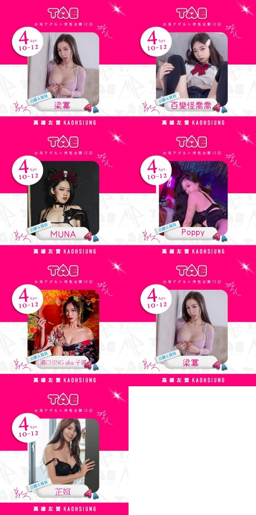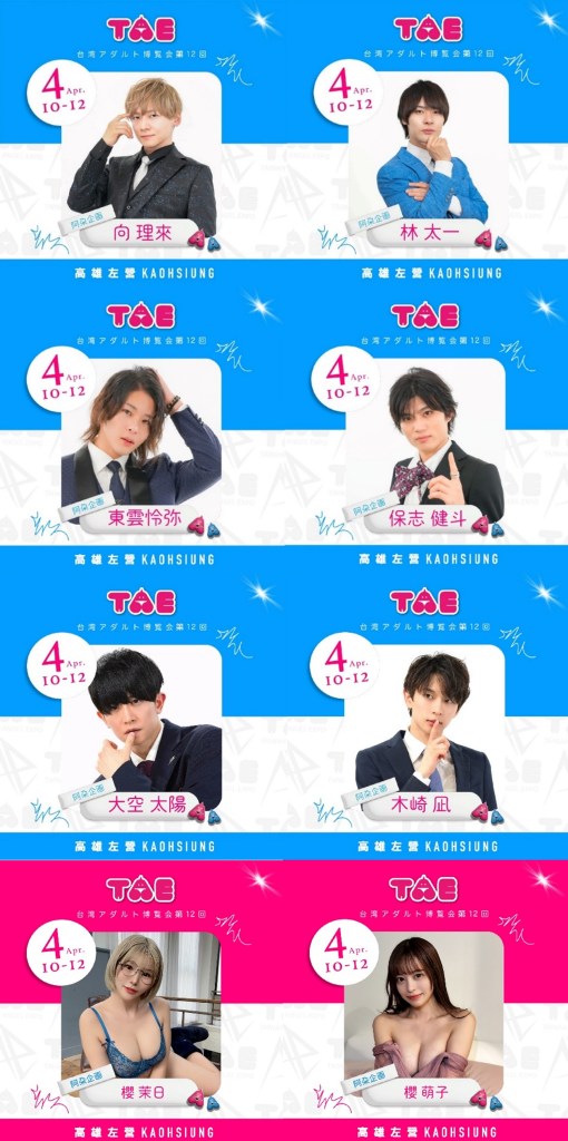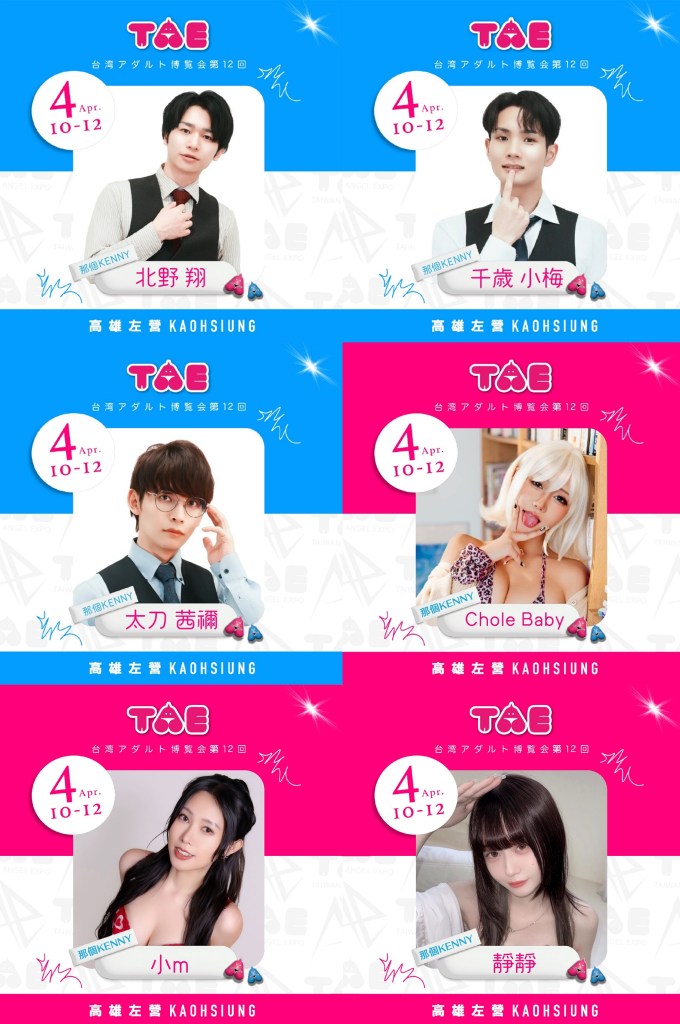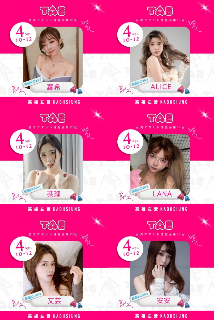 ▲ TAE「台灣成人博覽會」邀請日本性感當紅女優、帥氣男星、高人氣寫真女神、創作者等出席 4 月 10 日至 4 月 12 日「左營高鐵共構 10 樓國際活動展演中心」活動!(圖:TAE台灣成人博覽會、博展國際/以下同)
