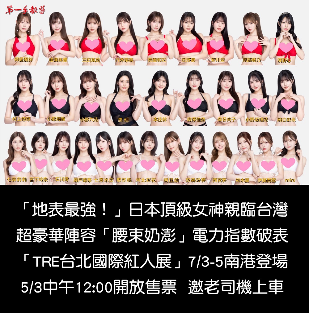 亞洲男性最具指標性盛會, 2026 TRE「台北國際紅人展」將於 7 月 3 日至 7 月 5 日在台北南港盛大登場!上百位性感日本及國際頂尖偶像震撼現身,多位「殿堂級」SS 女神更將破天荒同台亮相。讓你不必飛往海外,在 TRE 就讓你親身感受到,與偶像近距離接觸的黃金時刻,解鎖你最珍貴的夢幻回憶!