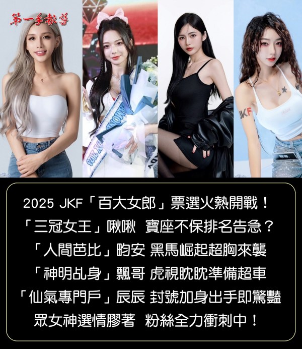 2025 JKF「第七屆百大女郎」票選開跑! 「三冠女王」啾啾跌落前三選前告急?「人間芭比」畇安黑馬之勢超胸猛!「神明乩身」飄哥虎視眈眈準備超車!「仙氣專門戶」辰辰宛如畫中仙出手即驚豔!百大女郎即將重新洗牌?邀你用行動為喜愛的女神加冕 2025-09-06 0