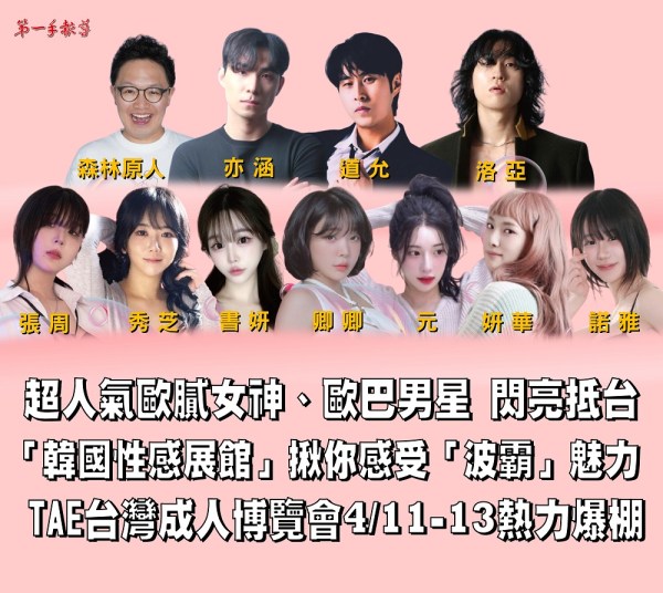 超人氣「韓國AV女優」腰束奶澎重磅來襲!百萬人氣追蹤「波霸歐膩」大秀必殺技!「韓國性感展館」MIB立足台灣放眼全球! TAE「台灣成人博覽會」4/11-13 尺度狂飆 邀粉絲攝好攝滿 2025-03-24 8