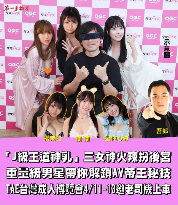 「J級王道神乳」櫻茉日、蘭蘭、星仲心海,暗黑三女優空降來台火辣扮《後宮巨乳陣》,「帥氣男星」吾郎帶你解鎖AV帝王秘技! 一王3后4/10與粉絲零距離接觸「TAE台灣成人博覽會」邀老司機上車 2025-03-13 82