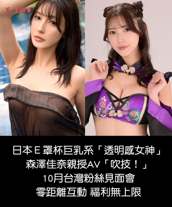 E罩杯巨乳系「透明感女優」森澤佳奈10月襲台!親授AV「吹技」寵粉零距離福利無上限