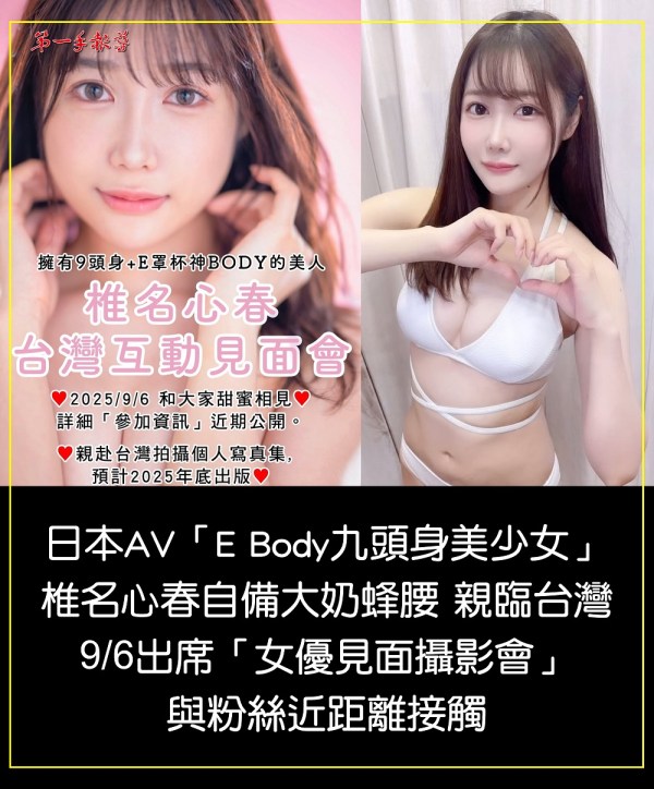 日本暗黑EBody「九頭身美少女」椎名心春 大奶蜂腰空降寶島 9/6出席「台灣女優見面攝影會」與粉絲近距離接觸
