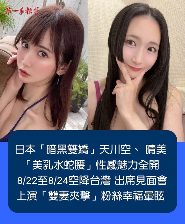 日本超人氣「暗黑雙嬌」天川空、 晴美「美乳水蛇腰」魅力全開 ! 8/22-8/24 空降台灣出席見面會 上演「雙人夾擊」粉絲幸福暈眩